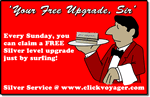 The Sunday Silver Service.What's that, you ask? Simple - every free member who surfs 250 or more sites today will receive a 7 day upgrade to Silver Level Membership! The Silver Click Voyager account will give you 5 credits per site surfed (instead of the usual 2) and your sites will receive double traffic so grab yourself a terrific freebie while you can :)